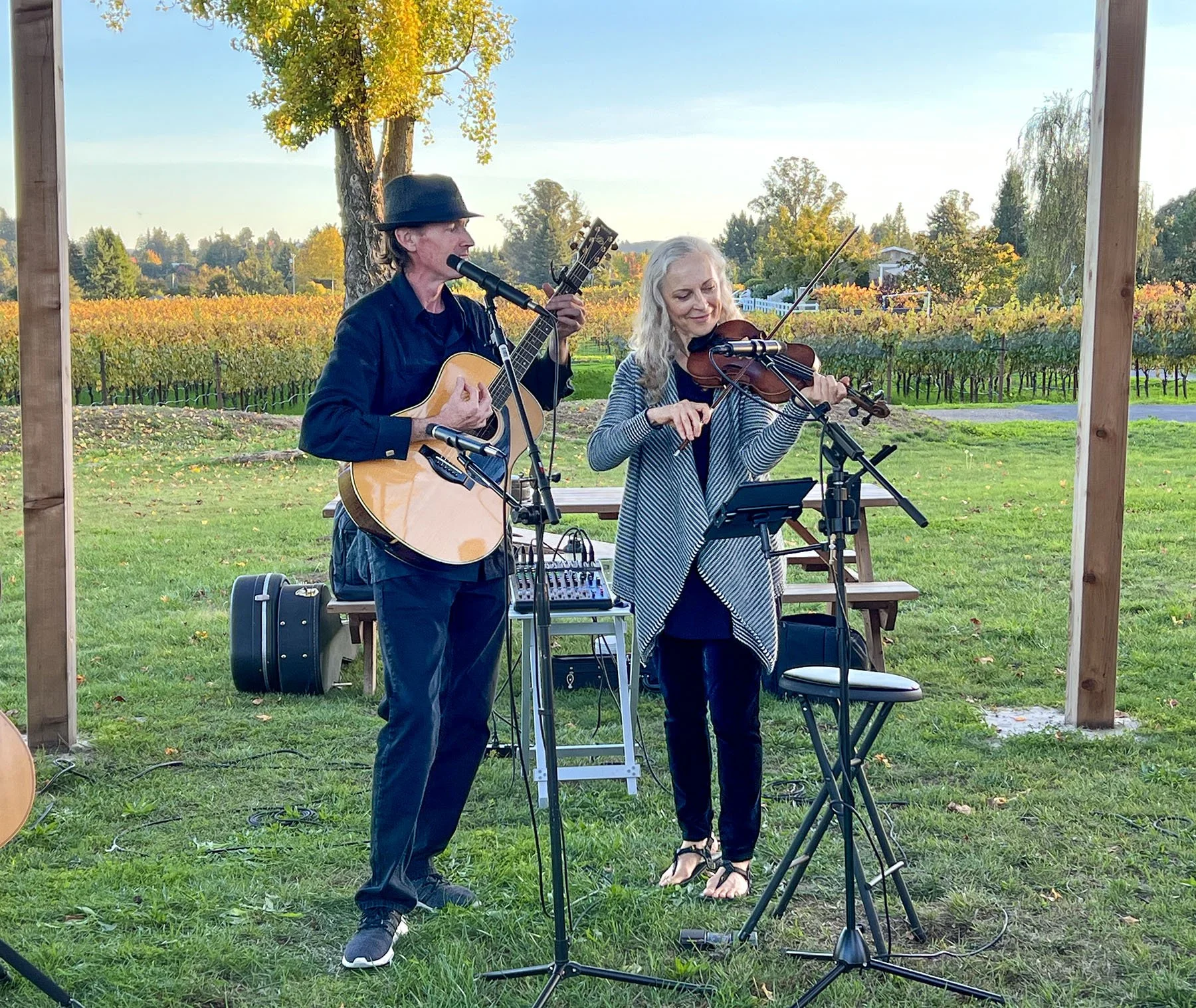 Lush, acoustic country-folk, pop, and traditional Irish music on fiddle, mandolin, guitar, bodhrán, and vocals.